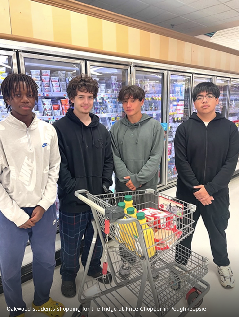 POUGHKEEPSIE – What started by students as a project to address food insecurity in their Literature of Direct Action class has grown into a community collaboration with Community Matters 2, Inc. – the Poughkeepsie Community Fridge. Since the fridge’s inception in 2022, Oakwood students have raised nearly $10,000 through grants and their Go Fund Me page to support their neighbors in need.